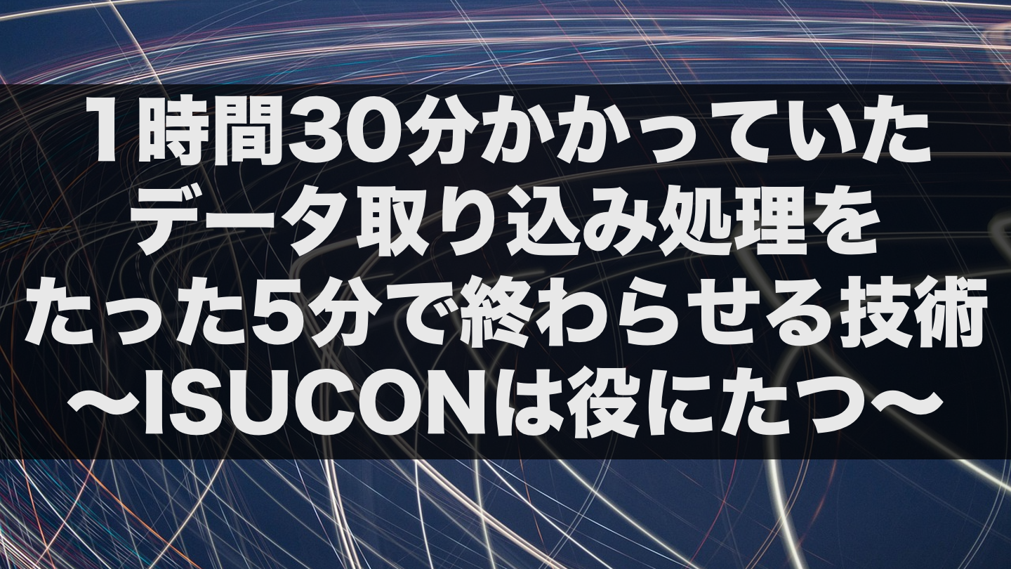 1時間30分かかっていたデータ取り込み処理をたった5分で終わらせる技術〜ISUCONは役にたつ〜