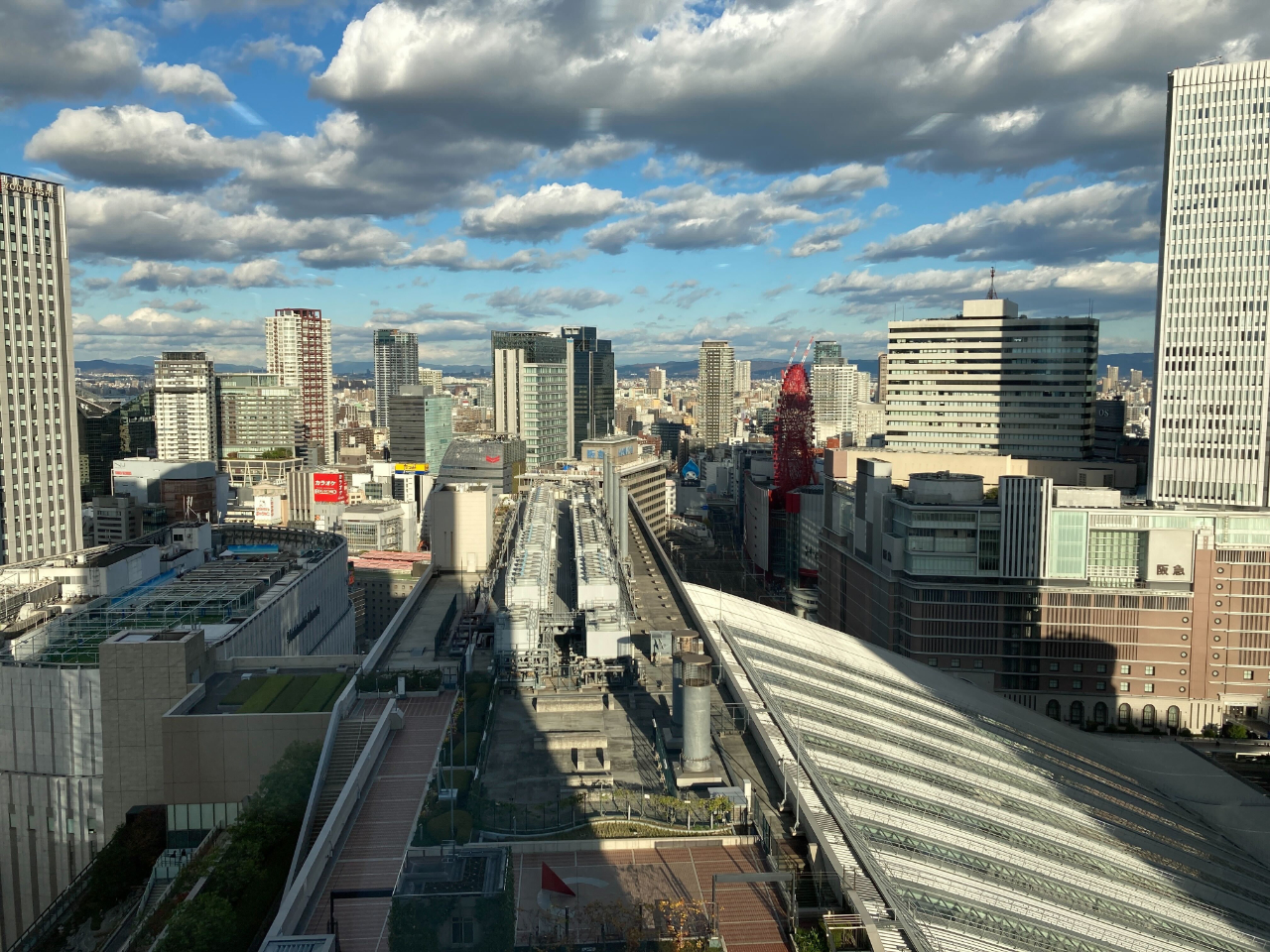 大阪駅の真上にあり電車マニアにはたまらない!真ん中より少し右側に線路が見えます。