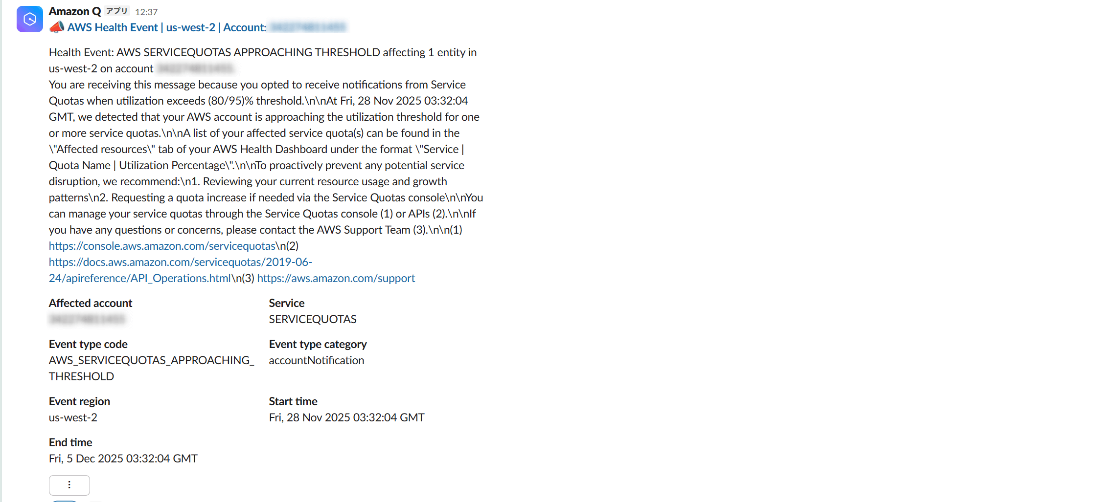 今回はAmazon Q Developerを用意し、Slackチャンネルに通知するようにしました。