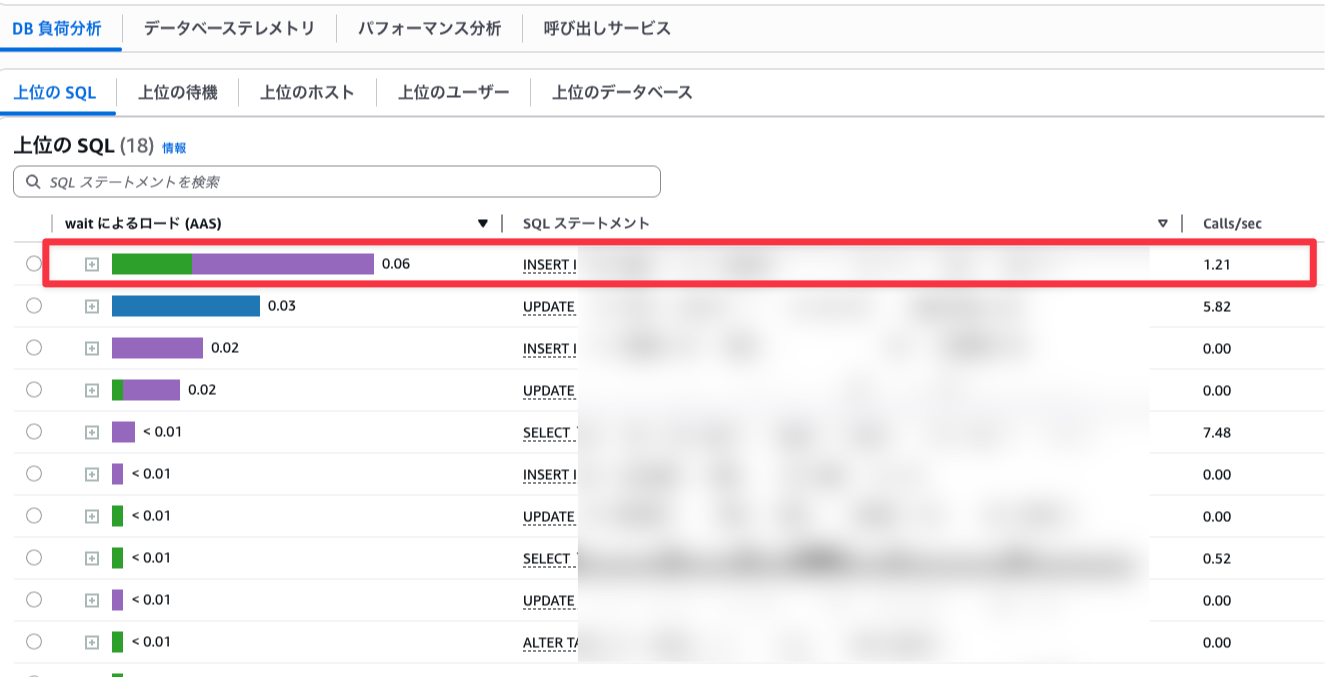 - INSERTはまだいるが実行回数が減り、AASも減った