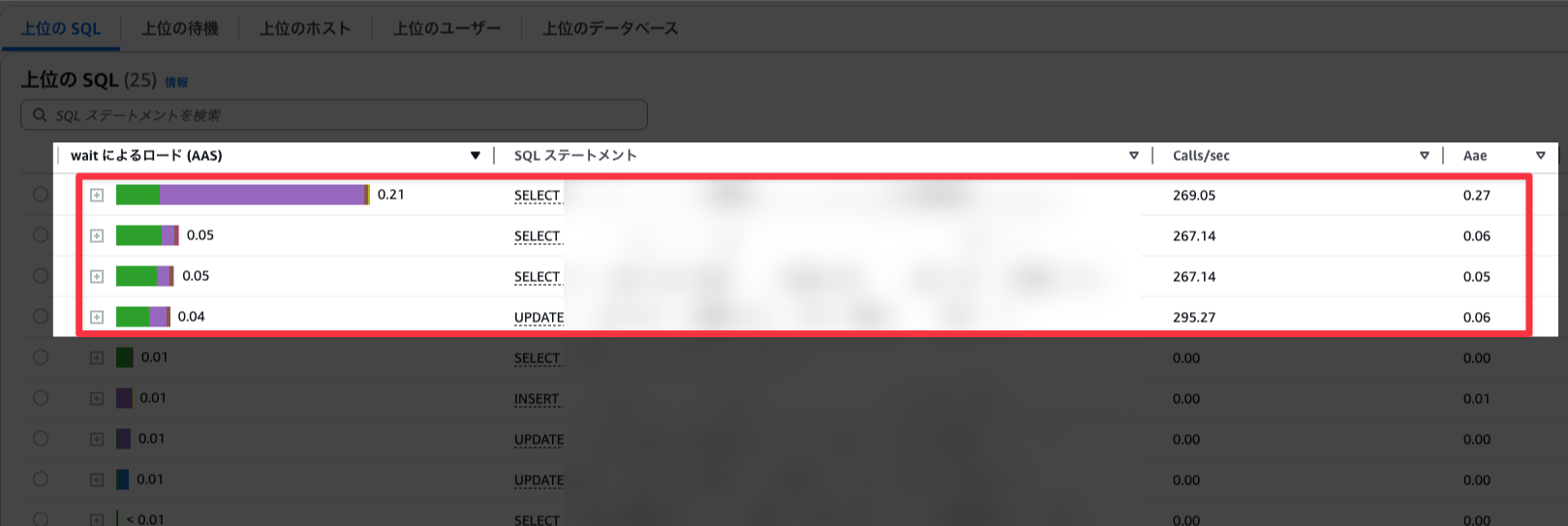 - 改善前に負荷がかかっているSQLとして挙げられていたSELECTがなくなって、ボトルネックを解消した